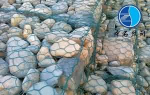 石籠網護墊分表面金屬鍍層和表面PVC/PE涂層兩個大類。使用的金屬線徑是根據六角形的大小而不同。生產過程是經織網,剪切,鎖邊,綁扎后制成石籠和護墊。石籠和護墊以折疊狀態供貨。